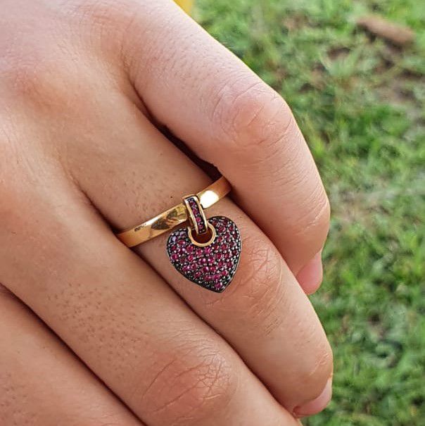 Anel de coração cravejado com zirconia rubelita banhado a ouro 18 K.