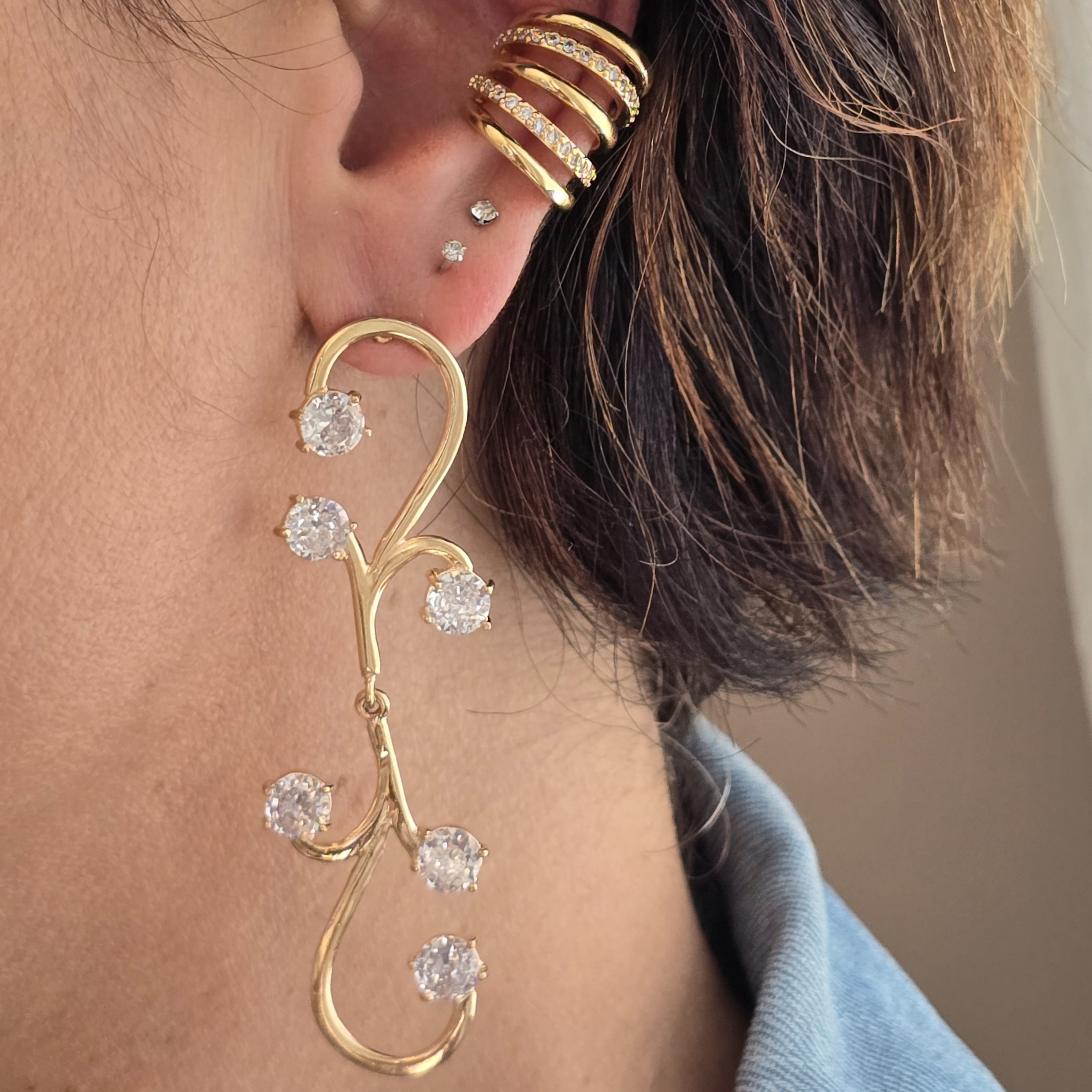 Brinco com zircônias vermelha ou cristal banhado a ouro 18K.
