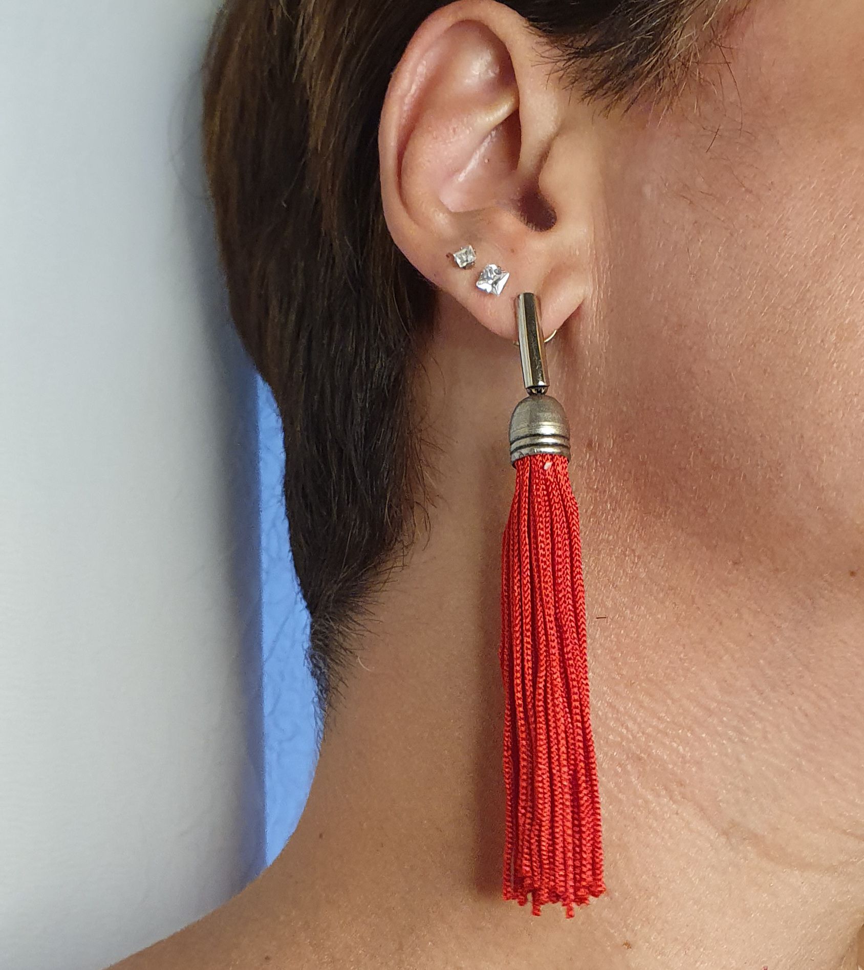 BRINCO TASSEL VERMELHO COM GRAFITE - BIJUTERIA
