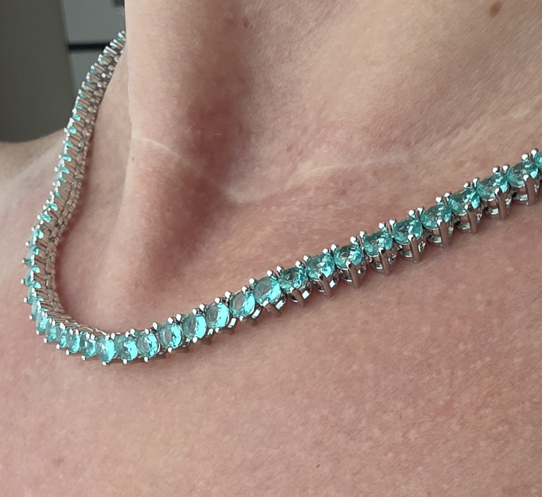Colar riviera três pontas com zircônias turmalina banhado em ródio.