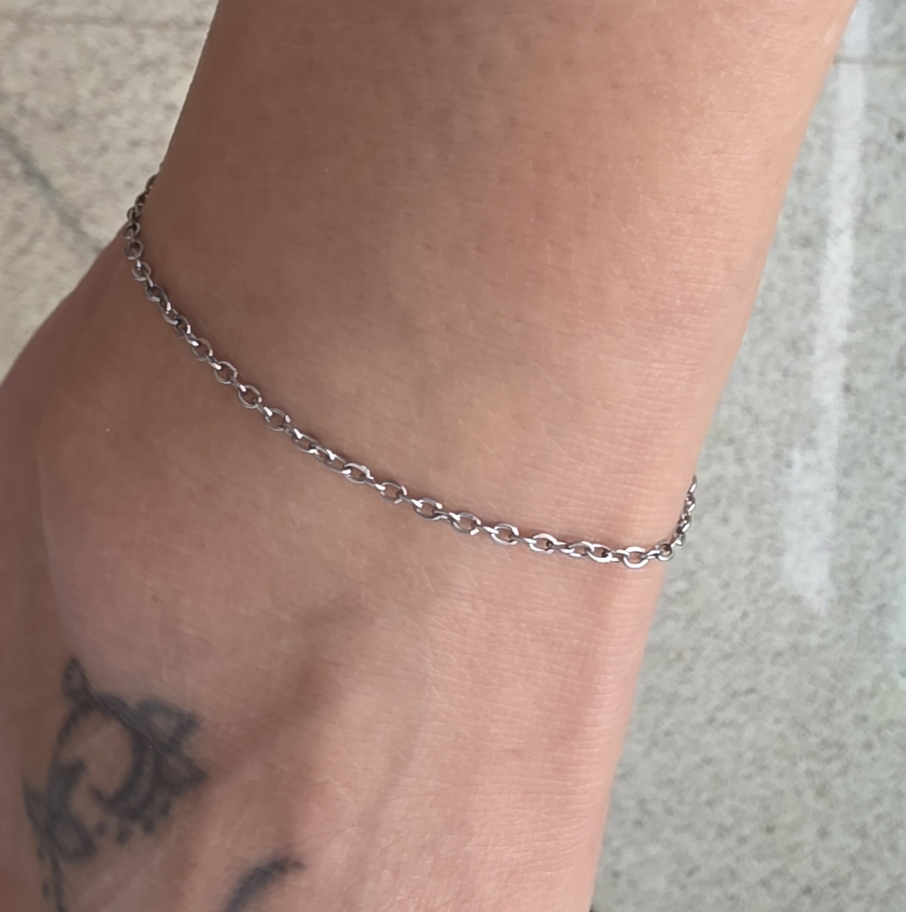 Tornozeleira sem pingente em aço inox, medindo 26 cm.